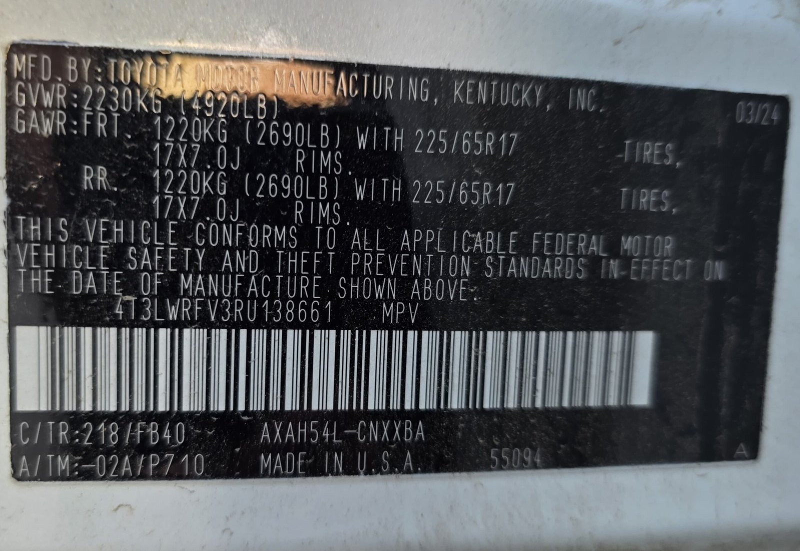 VIN 4T3LWRFV3RU138661